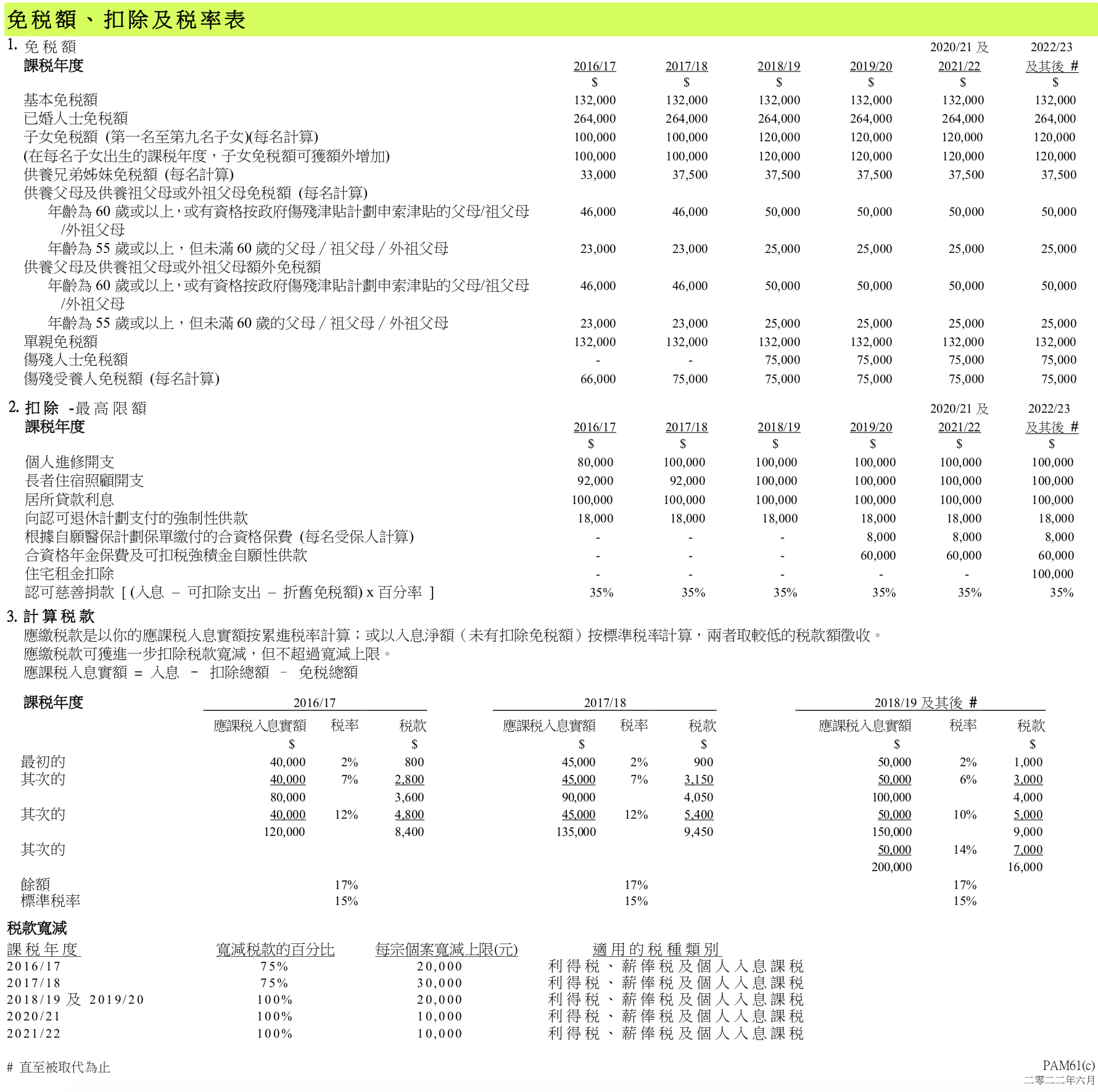 从任何职位 ( 如董事 ) 或受雇工作所获得的收入和退休金,而有关入息是于香港产生或得自香港的,须征收薪俸税,税款不会超过总入息净额 ( 不扣除免税额 ) 按标准税率 (15%) 计算的数额。