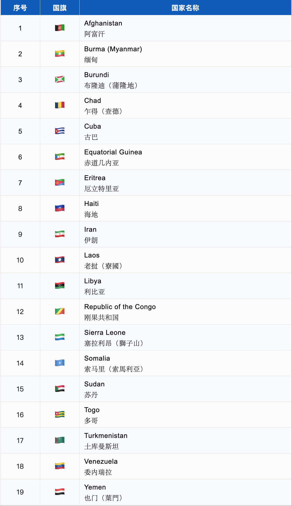 ▼19个禁令国家清单